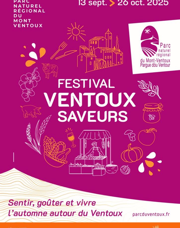 Le Festival Ventoux Saveurs 2025 se déroule du 13 septembre au 26 octobre dans le territoire du Parc Naturel Régional du Mont Ventoux, avec un temps fort à Vaison-la-Romaine du 24 au 26 octobre pour les « Rencontres Gourmandes ».